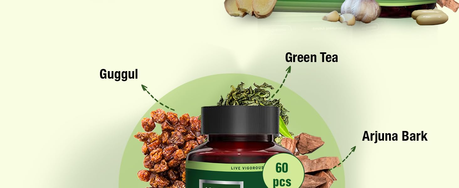 ✅ POWERFUL AYURVEDA + SCIENCE SYNERGY — A premium herbal formula combining Ayurvedic actives (Guggul, Arjuna, Garlic) with science-backed nutrients (Niacin, Vitamin C, Zinc, Plant Sterol Complex) to support healthy cholesterol levels and overall cardiovascular wellness as part of a balanced lifestyle.