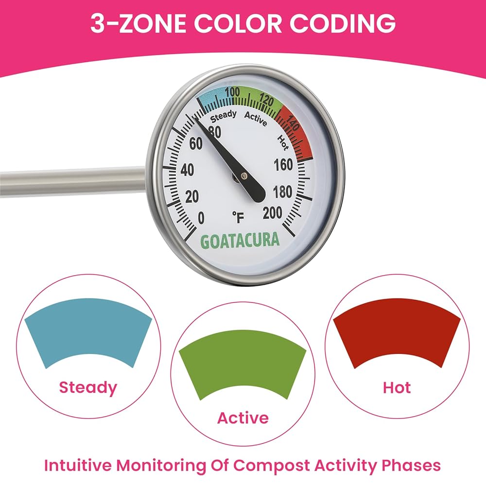 GOATACURA compost soil thermometer for home gardening, farm composting and environmental protection projects.