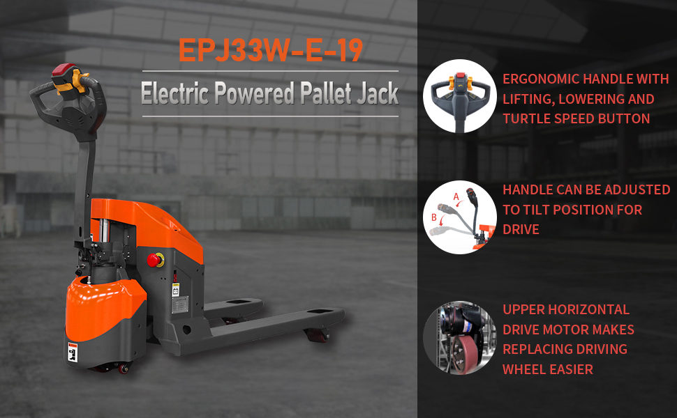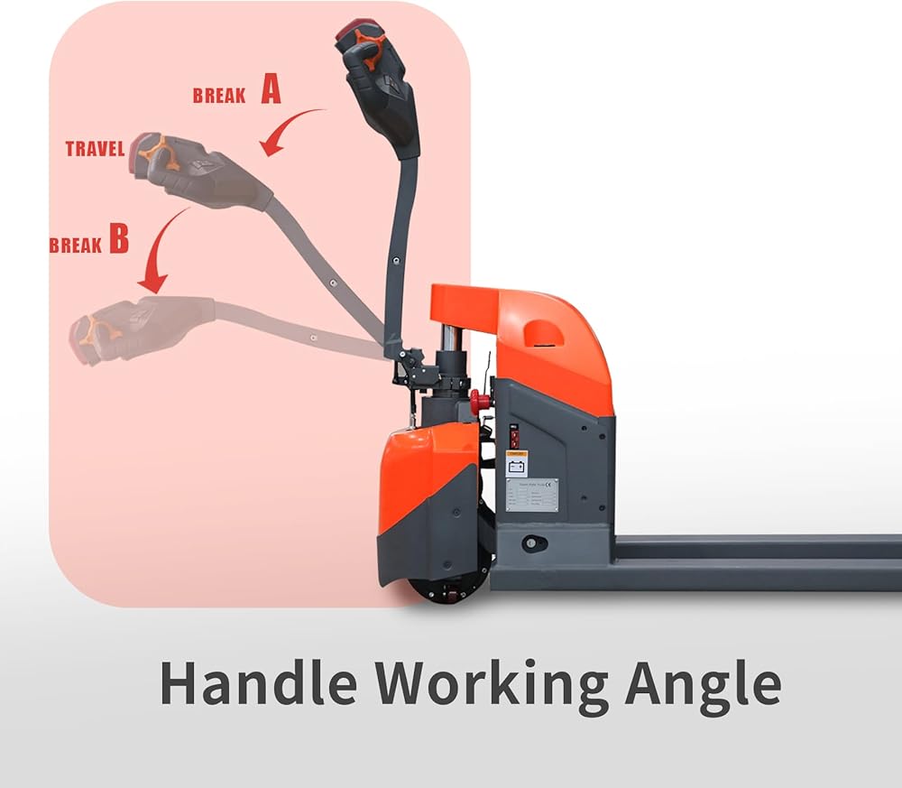 Textured Multi-Function Handle: Handle contains lift/lower control buttons, forward/reverse thumb wheels. Reverse motion safety switch ensures operator safety. Equipped with a gas spring that slowly rebounds when the handle is pressed protecting the components inside the handle. Walks while handle is upright when turtle button is pressed.