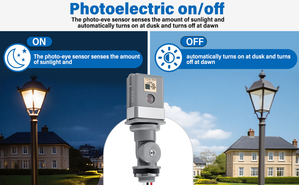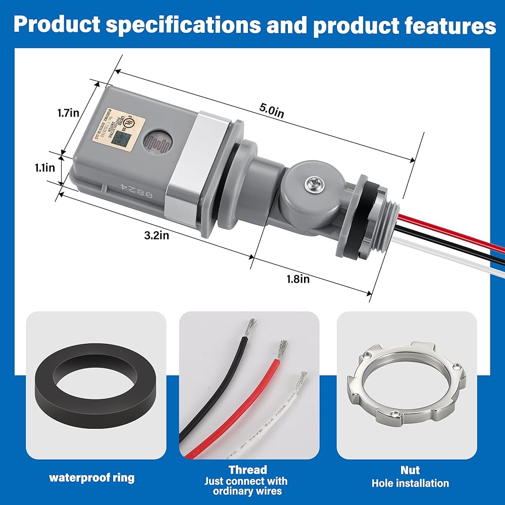 【Durable and Easy to Install 】 Crafted from sturdy materials for long-lasting use, each photo sensor for outdoor light is simple to wire and mount, ensuring quick setup for residential or commercial lighting projects