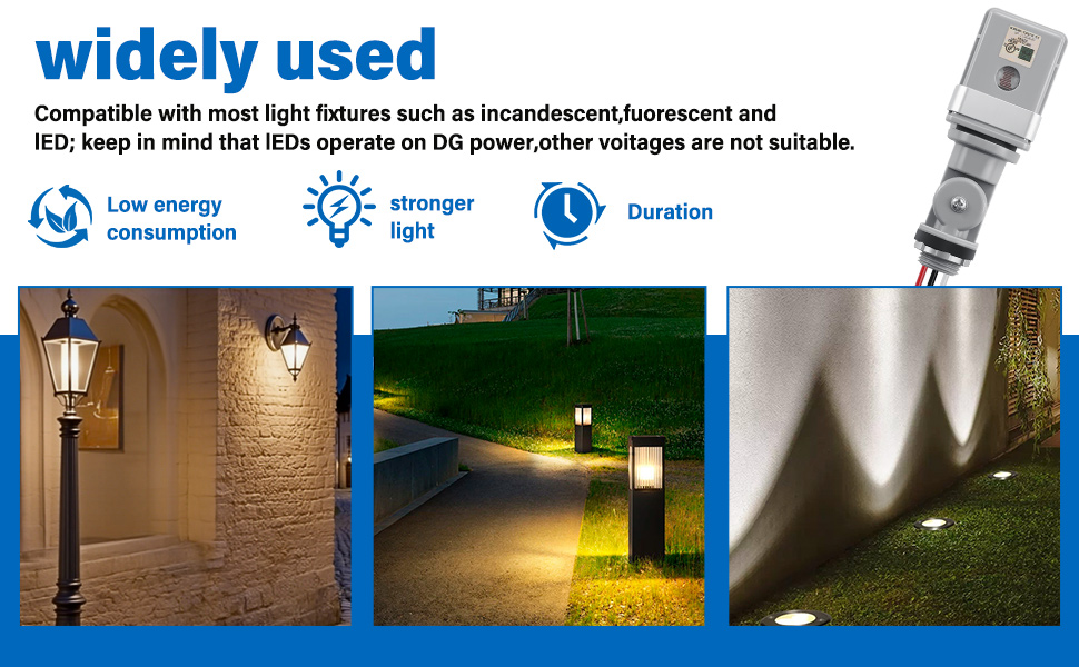 【Versatile Photo Sensor for Outdoor Light】 –Works with most standard 120 VAC, 50/60 Hz lighting systems, making it an ideal photo sensor for outdoor light fixtures in gardens, driveways, yards, and pathways.