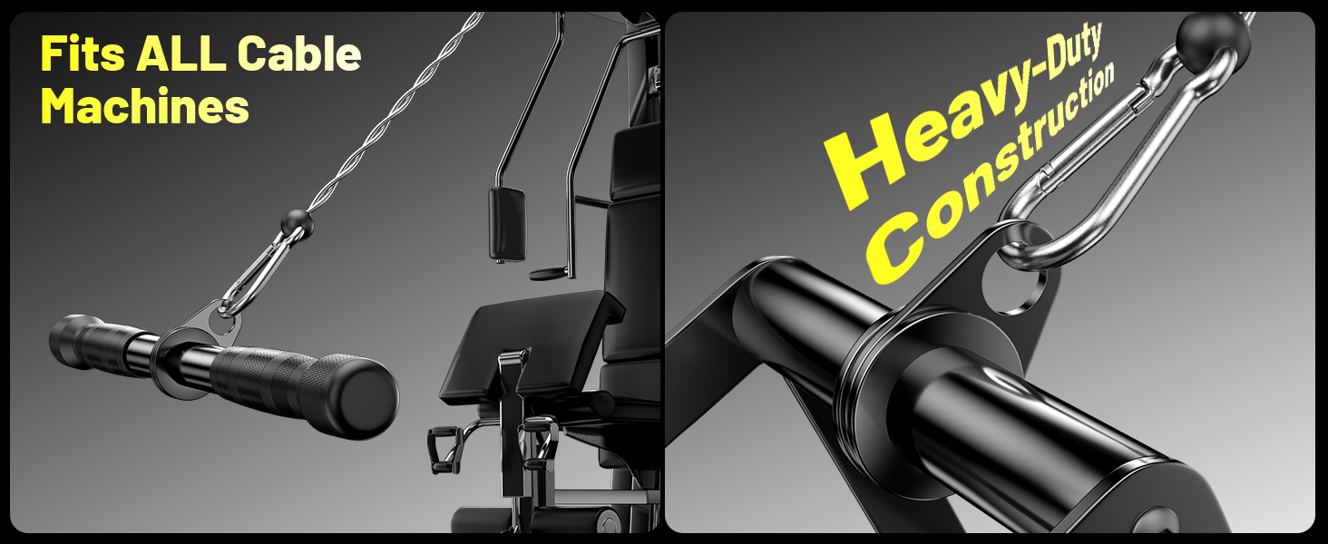 Durable Construction & Compatibility — V-shaped bar, V rotation handle and straight rotating bar are made from high-quality steel with knurled rubber grips and a 0.5-inch mounting hole to fit standard cable machine attachments and pulldown attachments. Suitable for use as a cable machine attachment on most lat pulldown machines and pulley systems for home gym setups.