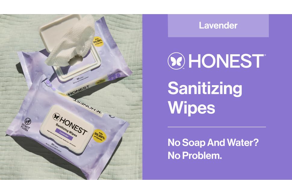 The Honest Company Lavender Sanitizing Alcohol Wipes, Antibacterial with Aloe, Kills 99% of Germs, 15 Count