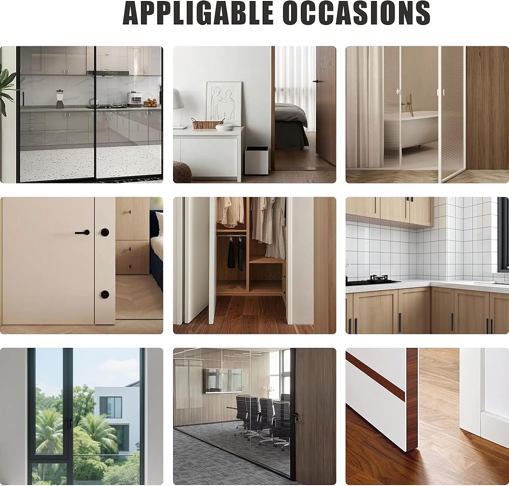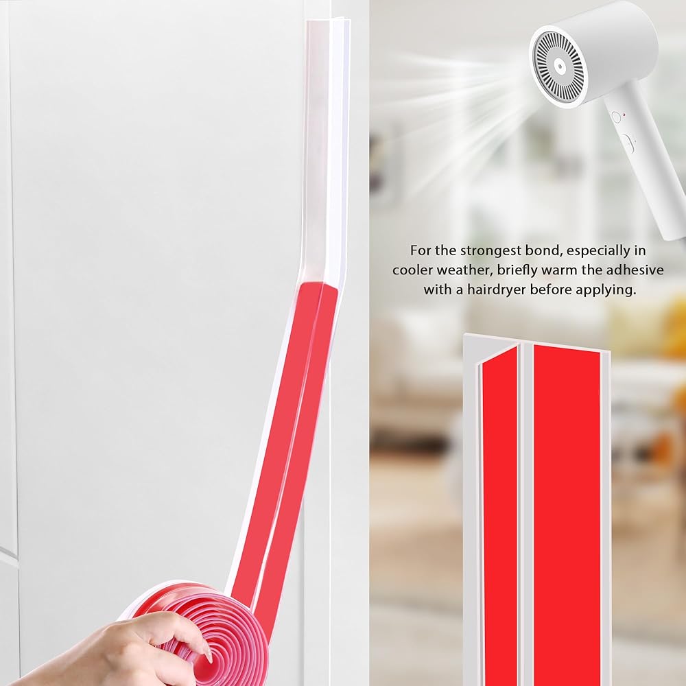【Durable & Wide Application】Crafted from high-quality, flexible silicone, this weather stripping is built to last. It resists wear, deformation, and extreme temperatures. It's the perfect solution for sealing frameless glass doors, windows, cabinets, closets, thresholds, and more.