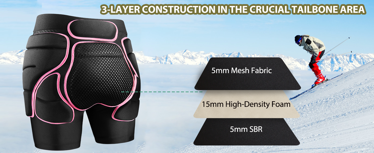 Hip Protection: Padded shorts provide comprehensive protection for the vulnerable hips, thighs, tailbone, and sit bones, allowing you to confidently and safely engage in any extreme sport, including skiing, skating, and snowboarding.