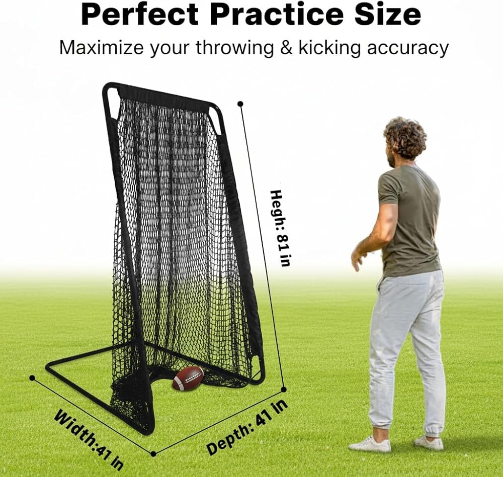 Extra Deep Pocket Design: Equipped with an extra deep net pocket that effectively catches and secures footballs, reducing time spent retrieving balls during training