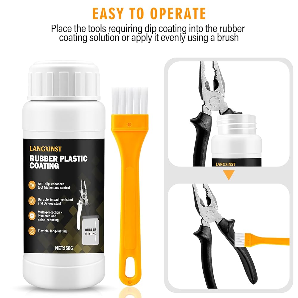 Tool dip coating with rubber, liquid rubber dip coating, Protective Coating Rubber Sealant, Slip-Resistant, Waterproof, Flexible, Ideal for DIY Tool Making (Black)