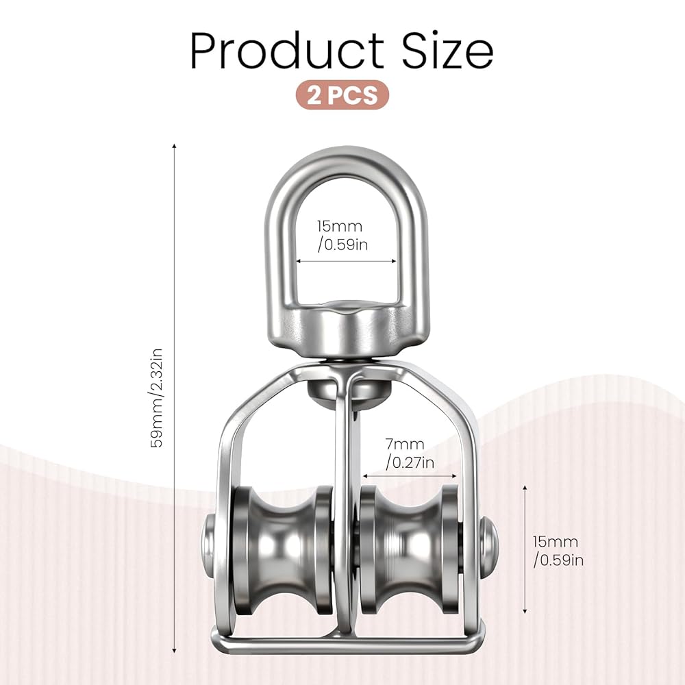 Package Contents: You will receive 2pcs M15 double pulley blocks, made of durable 304 stainless steel. These blocks are sufficient to meet your diverse needs