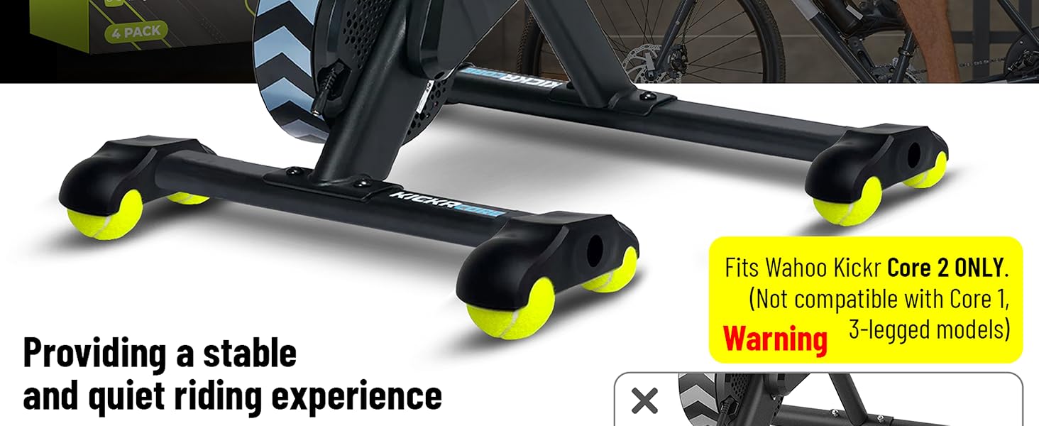 for Wahoo Kickr Core 2 | Rocker Feet Adapters with Tennis Balls 4 Pack, Thick Injection-Molded Accessory for Indoor Bike Cycling Smart Trainers to Make Your Riding More Comfortable