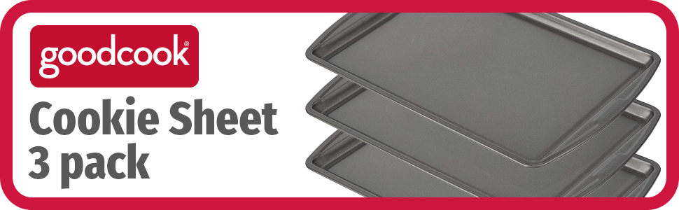 SET OF 3 BAKING SHEETS: GoodCook's Nonstick Cookie Sheet Set comes with three 13 x 9-inch baking sheets to bake your favorite recipes from cookies, desserts, and tasty sheet pan dinners