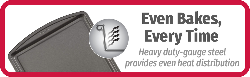 EVEN BAKE, EVERY TIME: The heavy-duty gauge baking pans in this bakeware set ensure long-lasting durability and even heat distribution, providing thorough baking for delicious results
