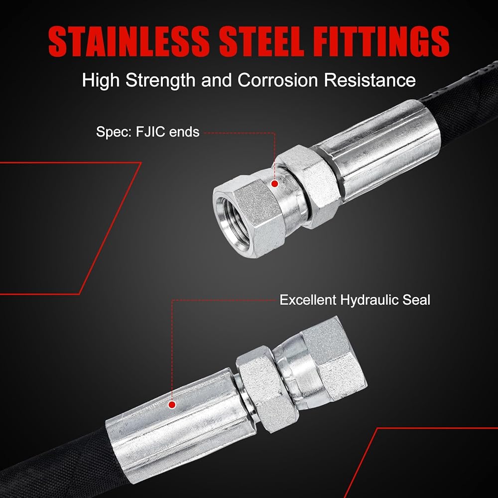 [Built-to-Last]: Built to withstand extreme pressure and resist wear, this durable hose combines a synthetic rubber core with a dual steel wire weave. The high-carbon steel fittings provide robust rust and corrosion protection, ensuring reliable performance in any environment.
