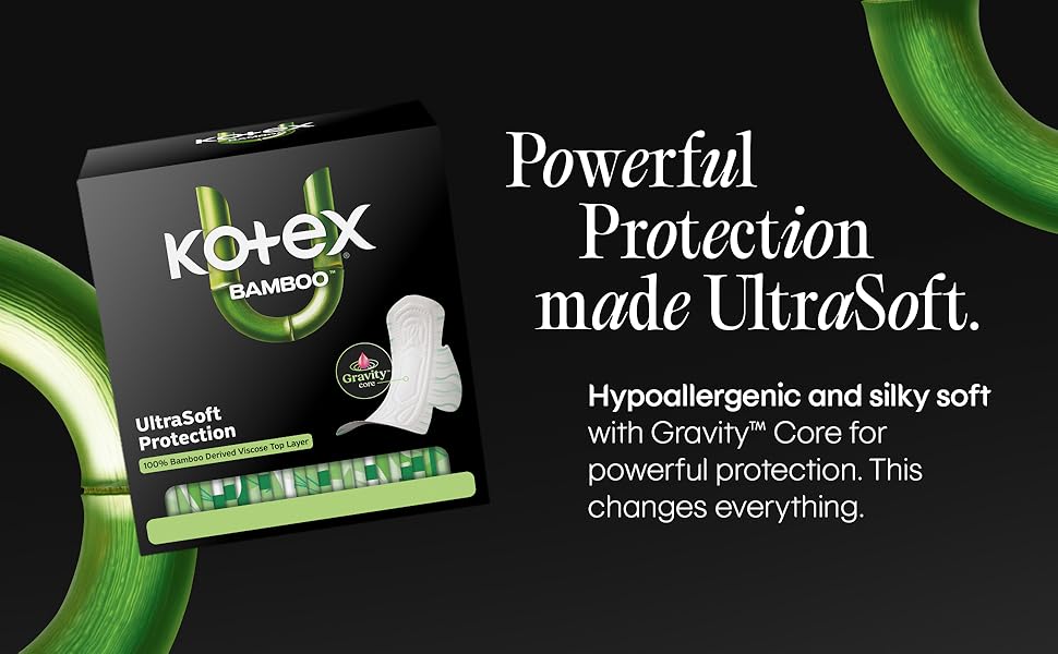 The new Kotex Bamboo Ultra Thin Pads with wings are designed to provide a comfortable and reliable period experience. Each pad features a 100% bamboo-derived viscose top layer that is UltraSoft and breathable, made from organically-grown bamboo. The 5x System with LeakShield Protection delivers breathability, odor control, dryness, fit, and leakage protection for up to 100% Leak Free Comfort. These pads are made without fragrance and are elemental chlorine free, as well as pesticide free. The Gravity Core pulls blood to the center of the pad to help you feel clean. Each pad is individually folded and wrapped for easy access, even on-the-go. Kotex feminine pads are FSA/HSA/HRA-eligible in the US. Packaging may vary from images shown.