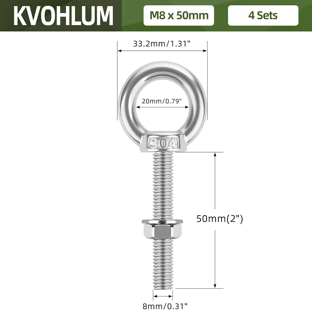 • Package Include - There are 4PCS eye bolts, 4PCS nuts and 4PCS washers in the package to meet your daily needs.