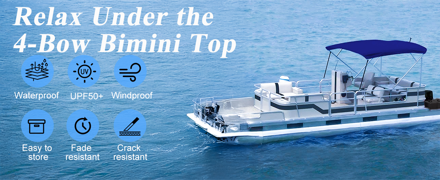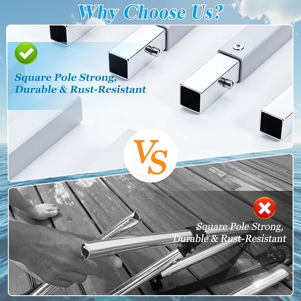 【Built to Ride Wind and Waves】Rust-resistant alloy hardware and sturdy matte rectangular poles offer superior stability over round tubes and plastic fittings. This 4 bow bimini top replacement canvas withstands rough waters, ideal for pontoons, jon boats, and larger vessels