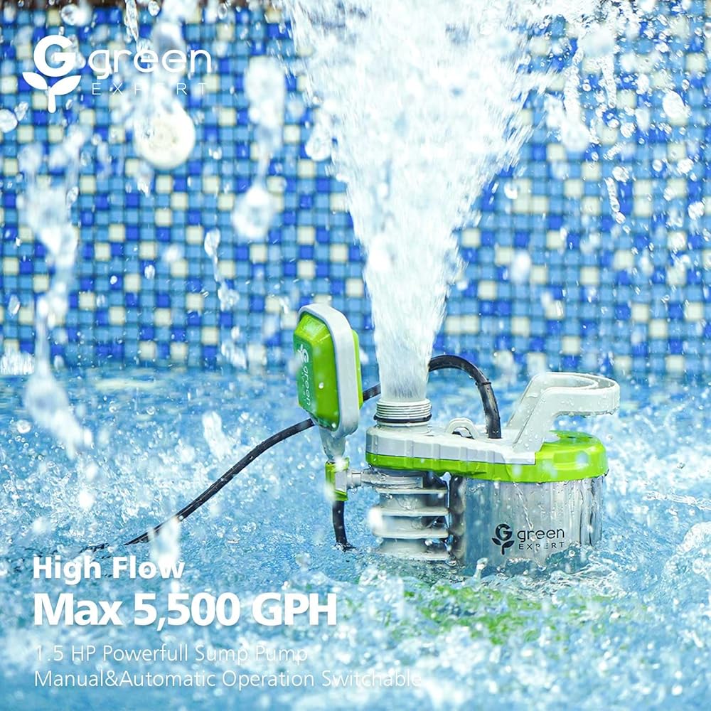 1.5HP HIGH-FLOW WATER REMOVAL – Oil-free PSC motor with thermal overload protection delivers up to 5500 GPH at 0 ft lift and reaches a max head of 35 ft (flow decreases at max head). Ideal for rapid water removal in flooded areas and drainage applications.