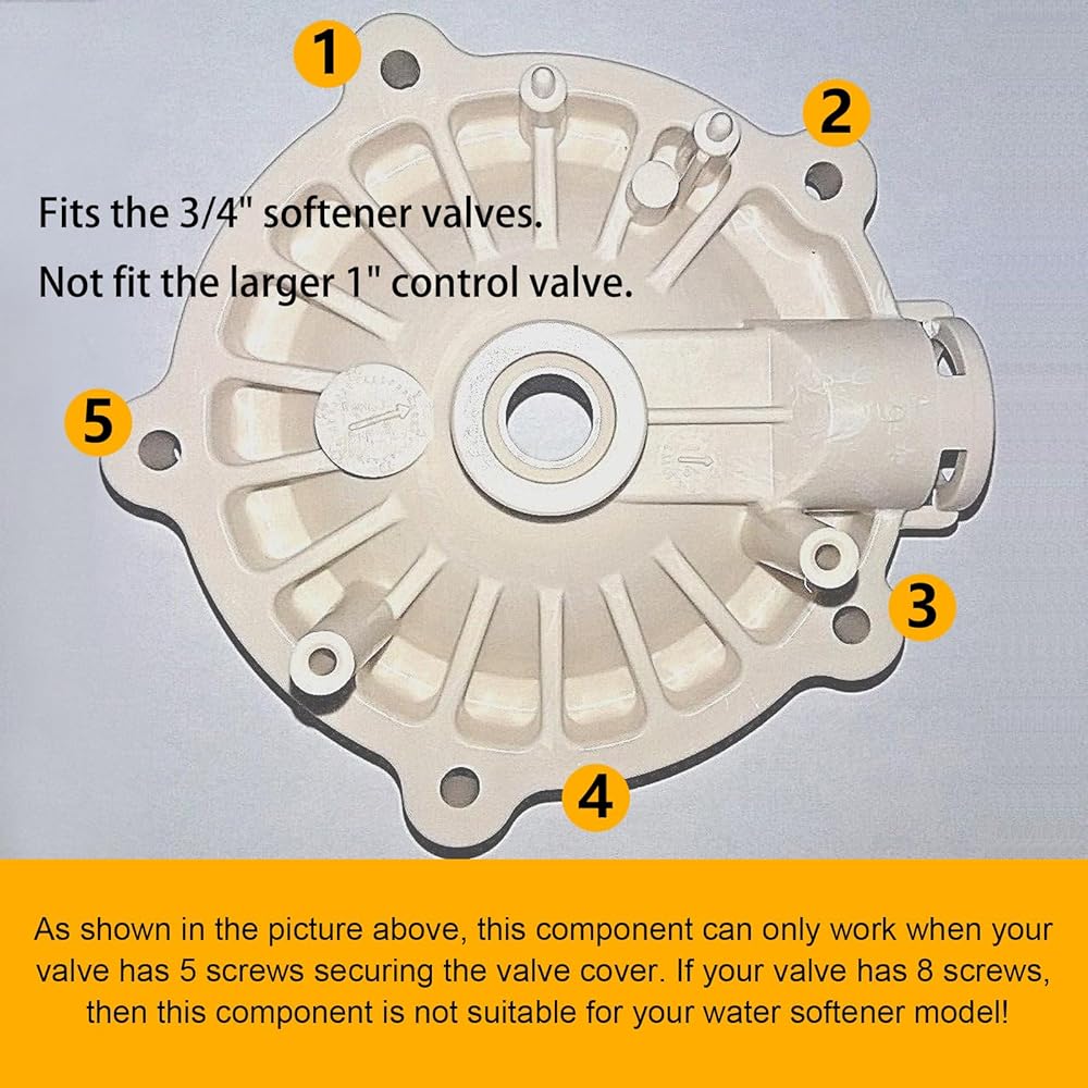 Fits Standard Valve Bodies: The 7278434 bypass valve is suitable for standard sized valve bodies with a valve cover/body featuring five screws. This means it can be used with many common models and types of water softeners