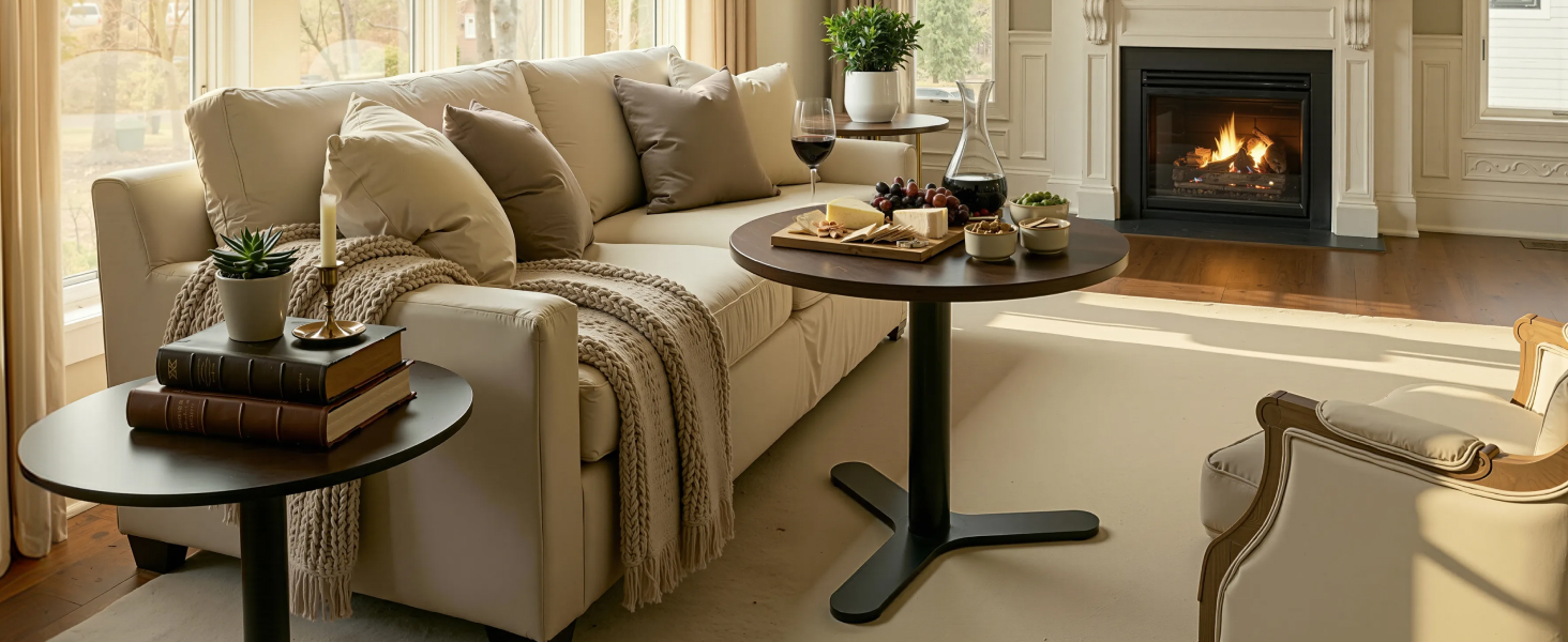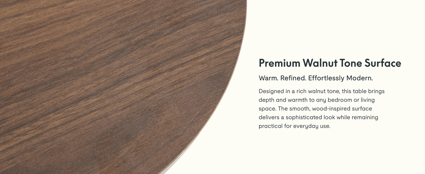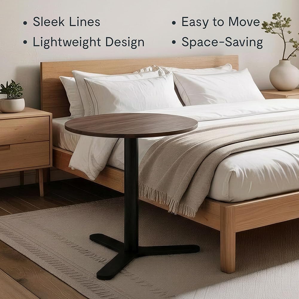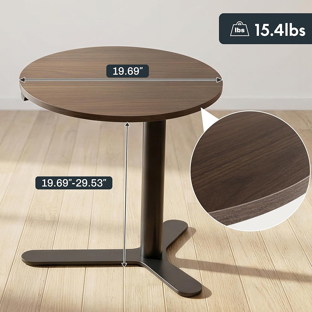4. Stylish Walnut Finish – 50cm round tabletop with a modern walnut finish adds elegance to any interior, while holding up to 15.4 lbs for laptops, books, snacks, or light decor.
