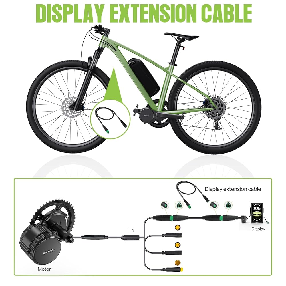 5PIN Extension Cable for BAFANG Mid Drive Kit(CAN Protocal ),5PIN Green Triangle Waterproof Connnector Ebike Display/Computer Extension Cable for 2025 BBS01 BBS02 HD Motor (Female to Male Plug)