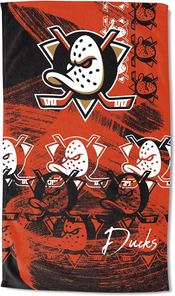 Dynamic Team Pattern: Displays multiple Anaheim Ducks logos over an energetic brushstroke pattern for a bold, motion-filled design that celebrates team pride