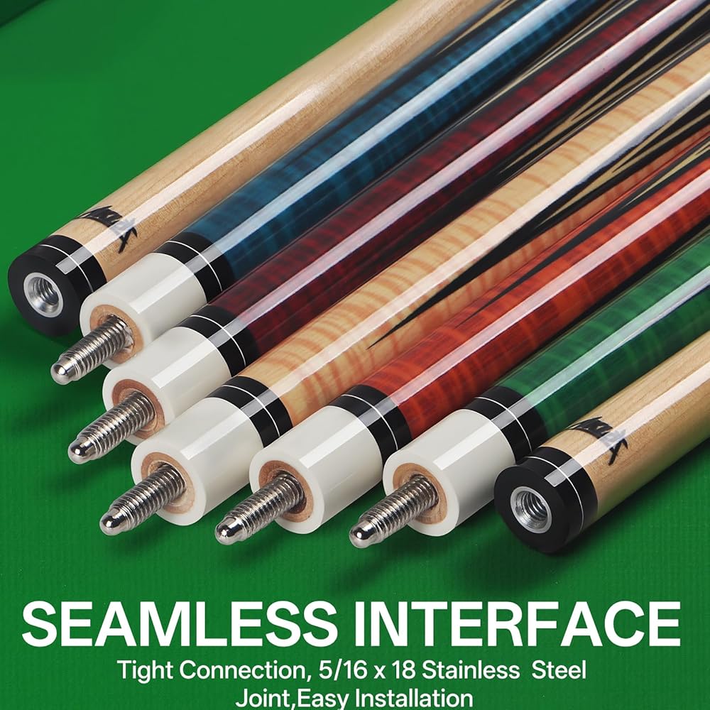5/16×18 Stainless Steel Joint:Corrosion-resistant stainless steel joint delivers rock-solid connections in your pool cue set, enabling quick assembly/disassembly without compromising stability