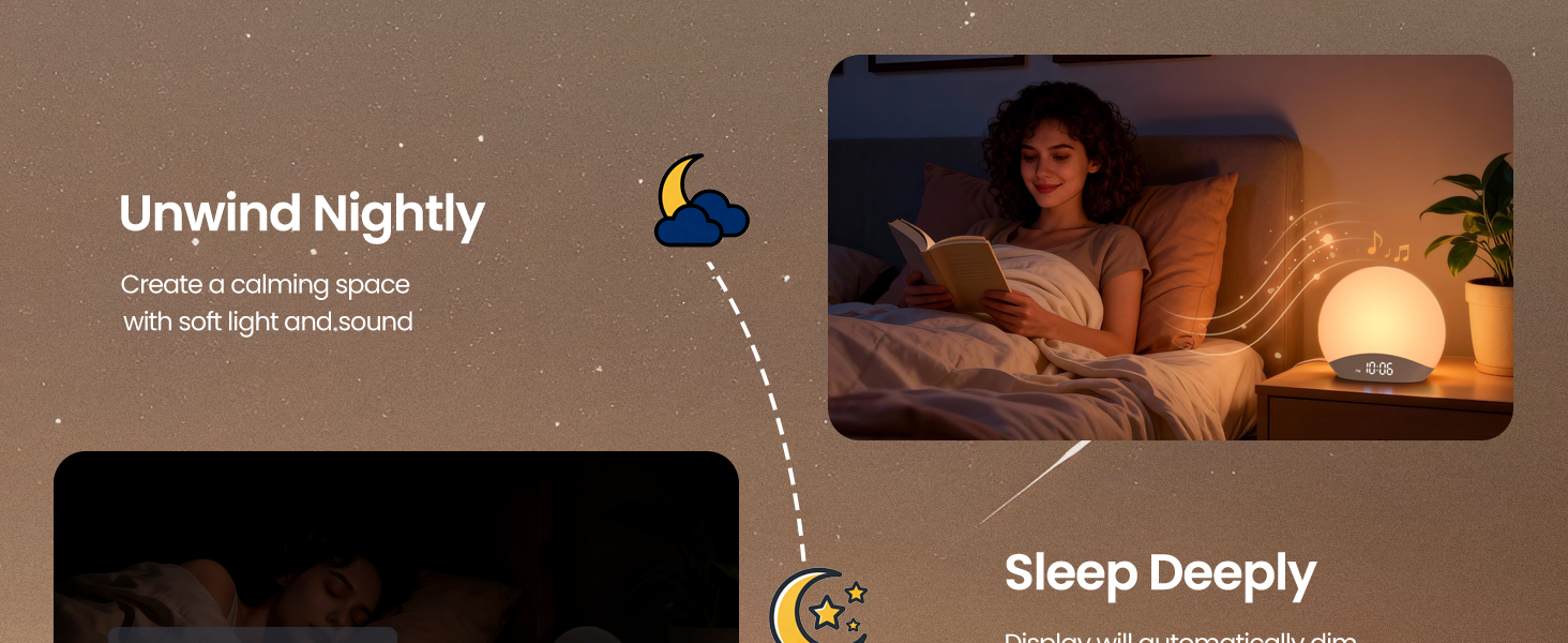 𝐁𝐮𝐢𝐥𝐝 𝐒𝐥𝐞𝐞𝐩 𝐑𝐢𝐭𝐮𝐚𝐥: Drift into rest with a custom night light color and precise timer, gently guiding your body into sleep mode. Paired with white noise, fan sounds, or natural sounds, it soothes the senses, creates a calming bedtime routies, and helps you enjoy deep, high-quality sleep.