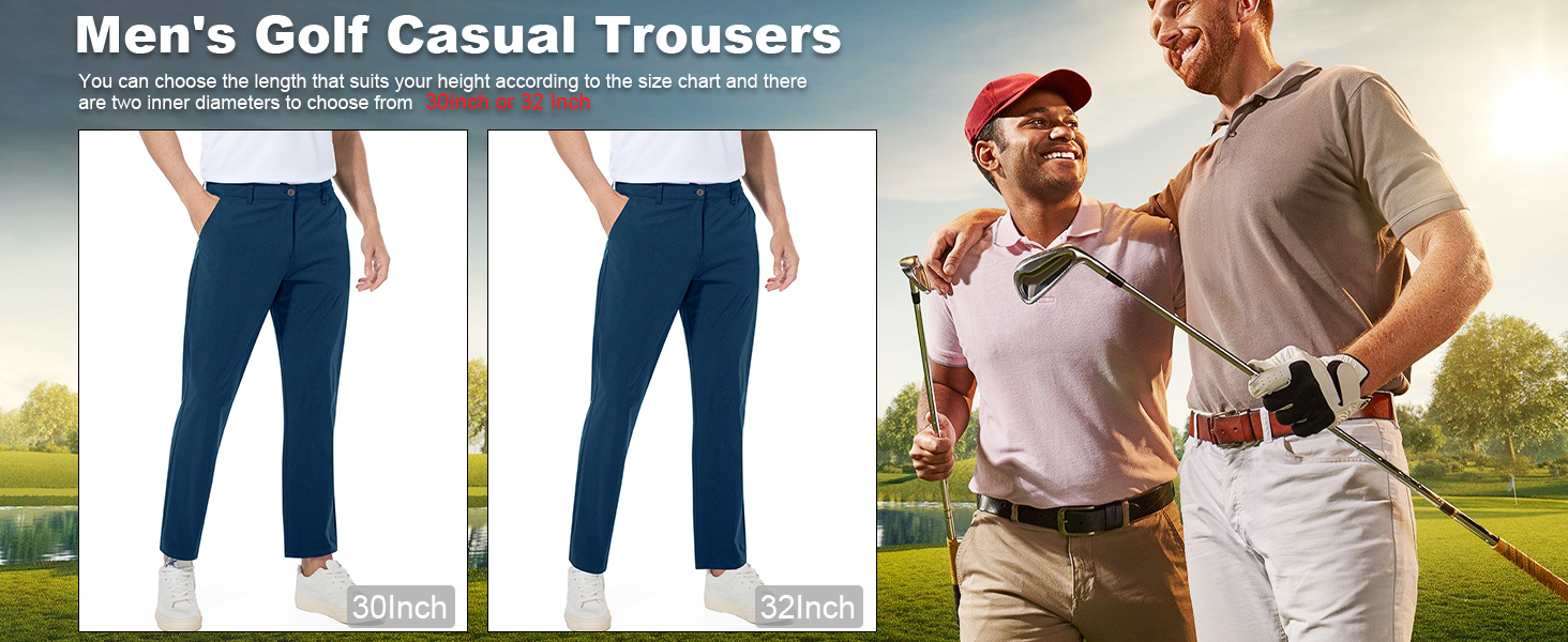 CLOSURE TYPE:Men's golf pants with elastic waistband and 1.6 inc belt loop design to improve product fitness. Zipper fly and button closure are built for long-lasting durable.