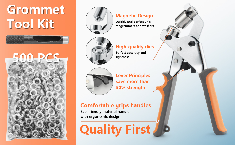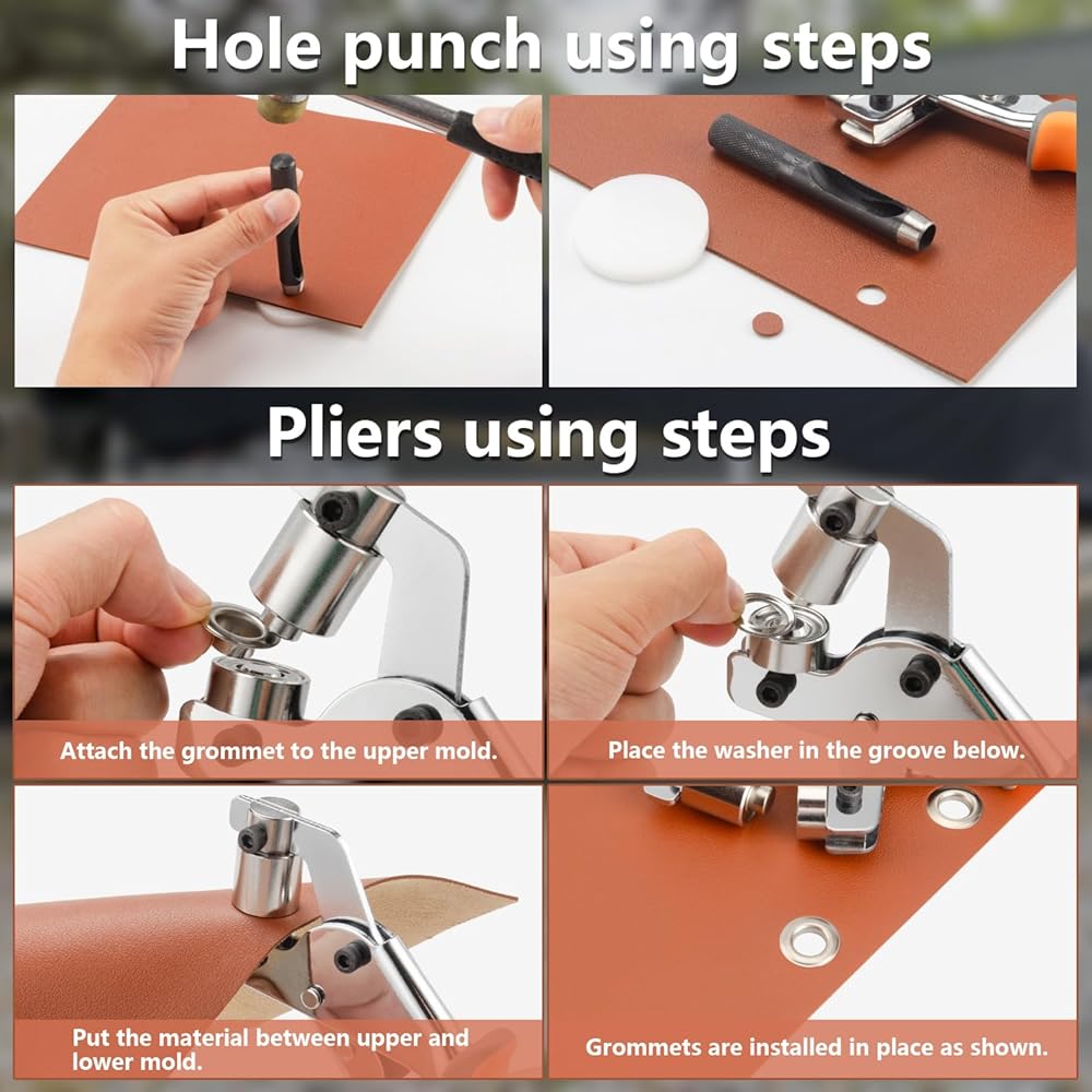 【high quality】 Constructed with high-strength steel and hardened steel dies, this heavy-duty grommet tool kit outperforms plastic hole punchers and cheap eyelet setters.