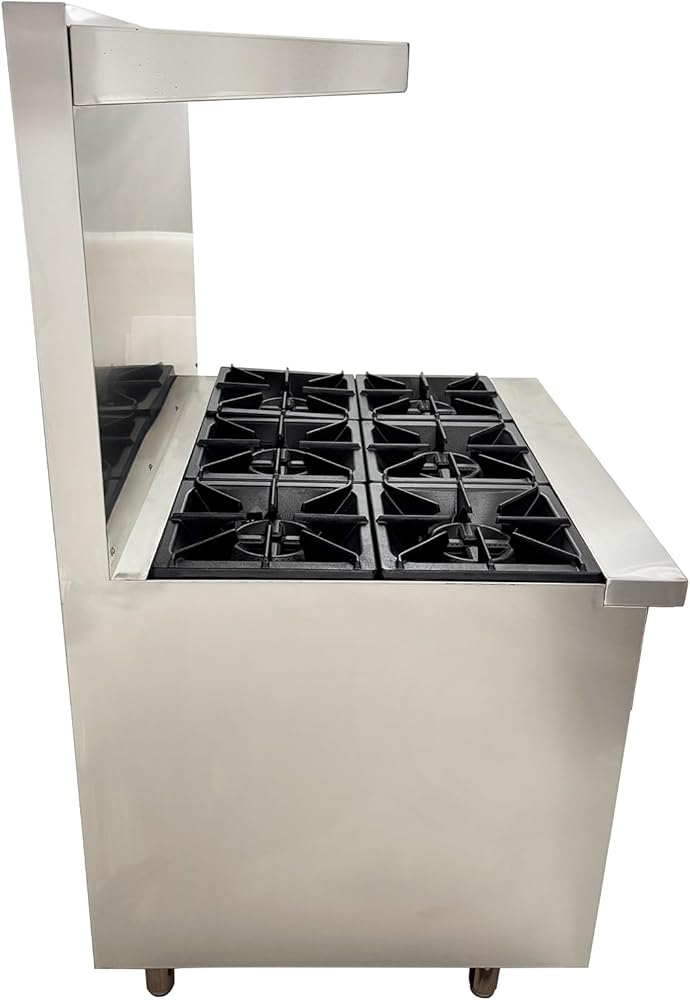 6 Independent Burners : Equipped with 6 independently controlled cast iron burners, this natural gas 6 burner range supports multi-pot cooking (simultaneous boiling, stir-frying, simmering) to meet high-demand commercial needs. Each burner comes with a standard heat-concentrating ring that reduces heat loss by 15%—saving energy while ensuring even heat distribution.