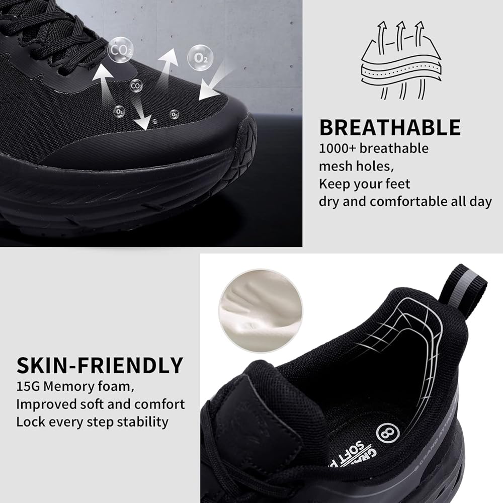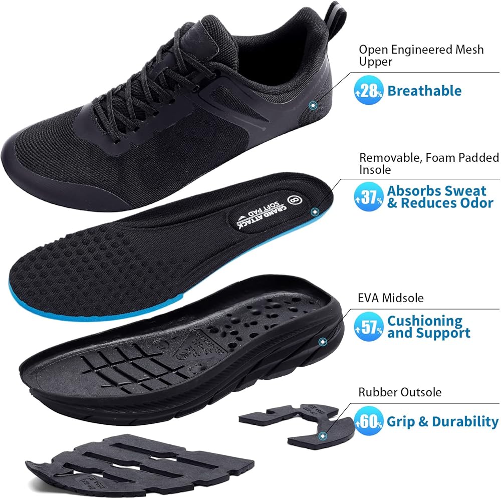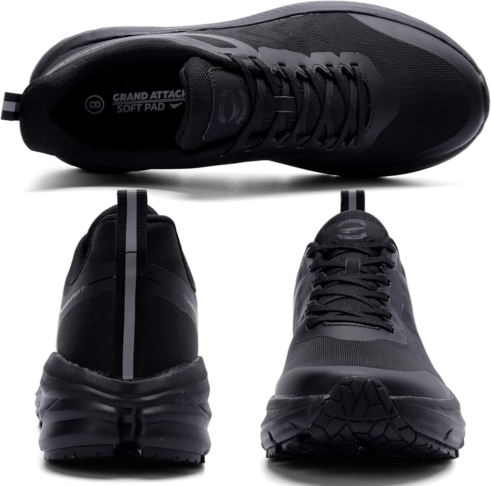 Grand Attack Road Running Shoes for Men with Superior Cushioned Comfort Lightweight Mens Walking Shoes Non-Slip Breathable Athletic Tennis Cross-Training Shoes Rugby Sneakers Black Size 11.5
