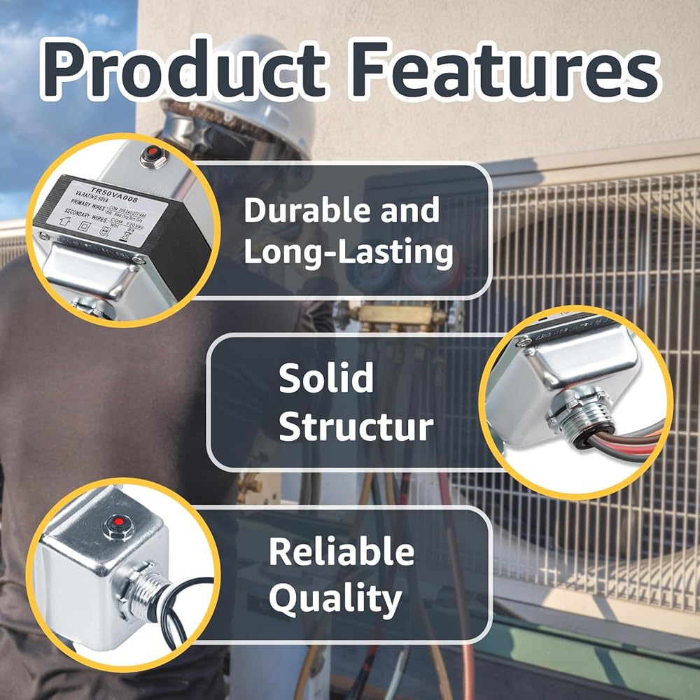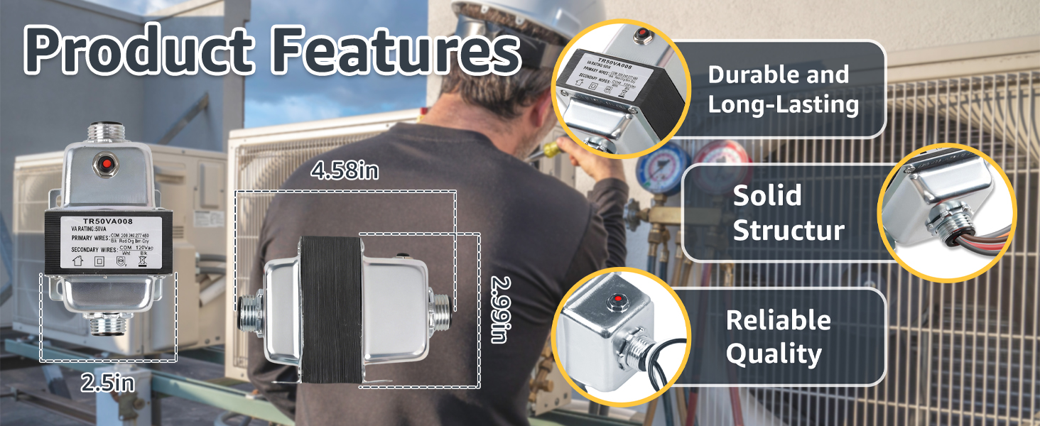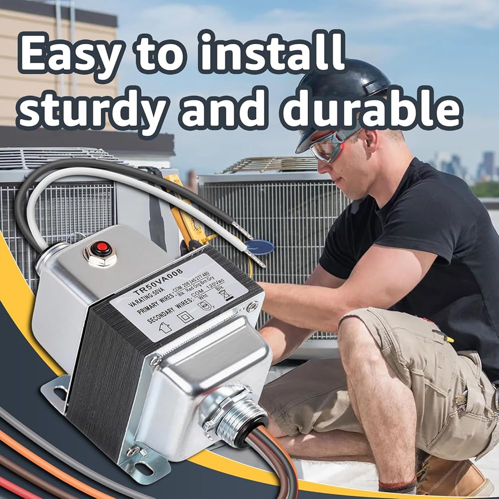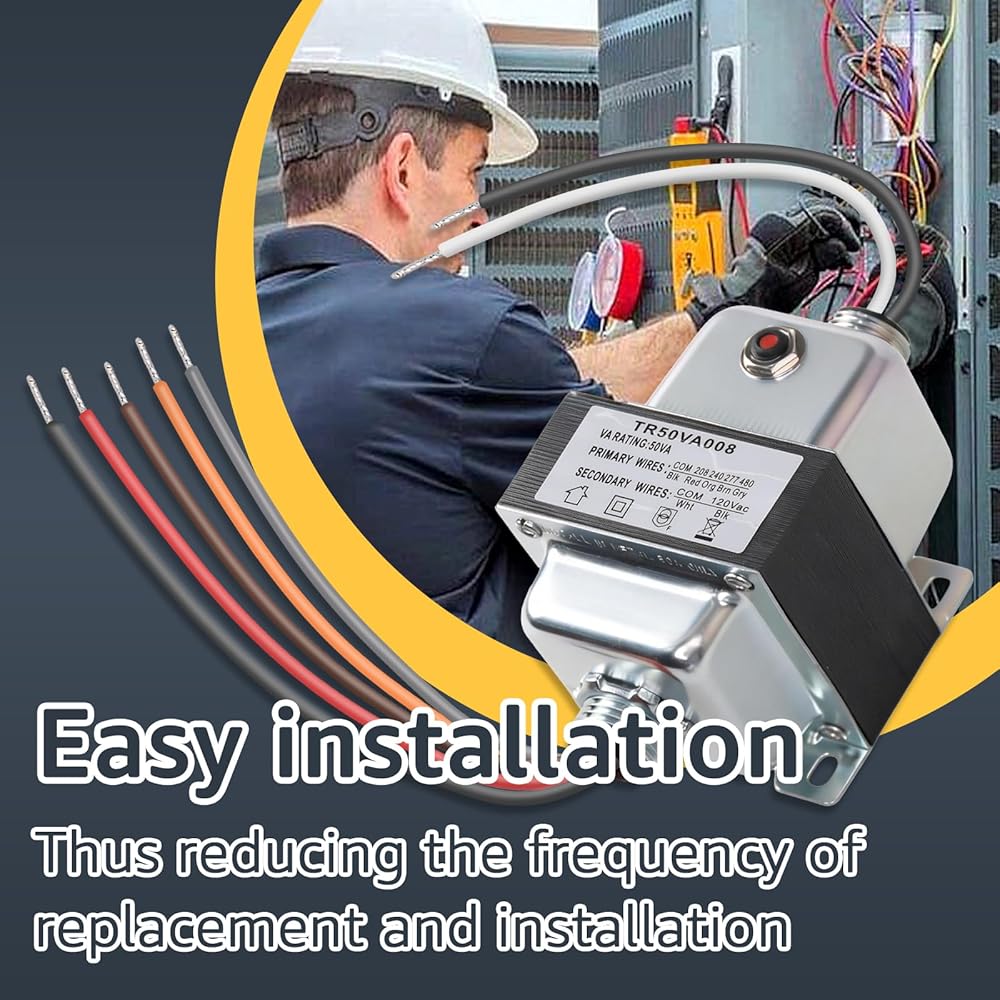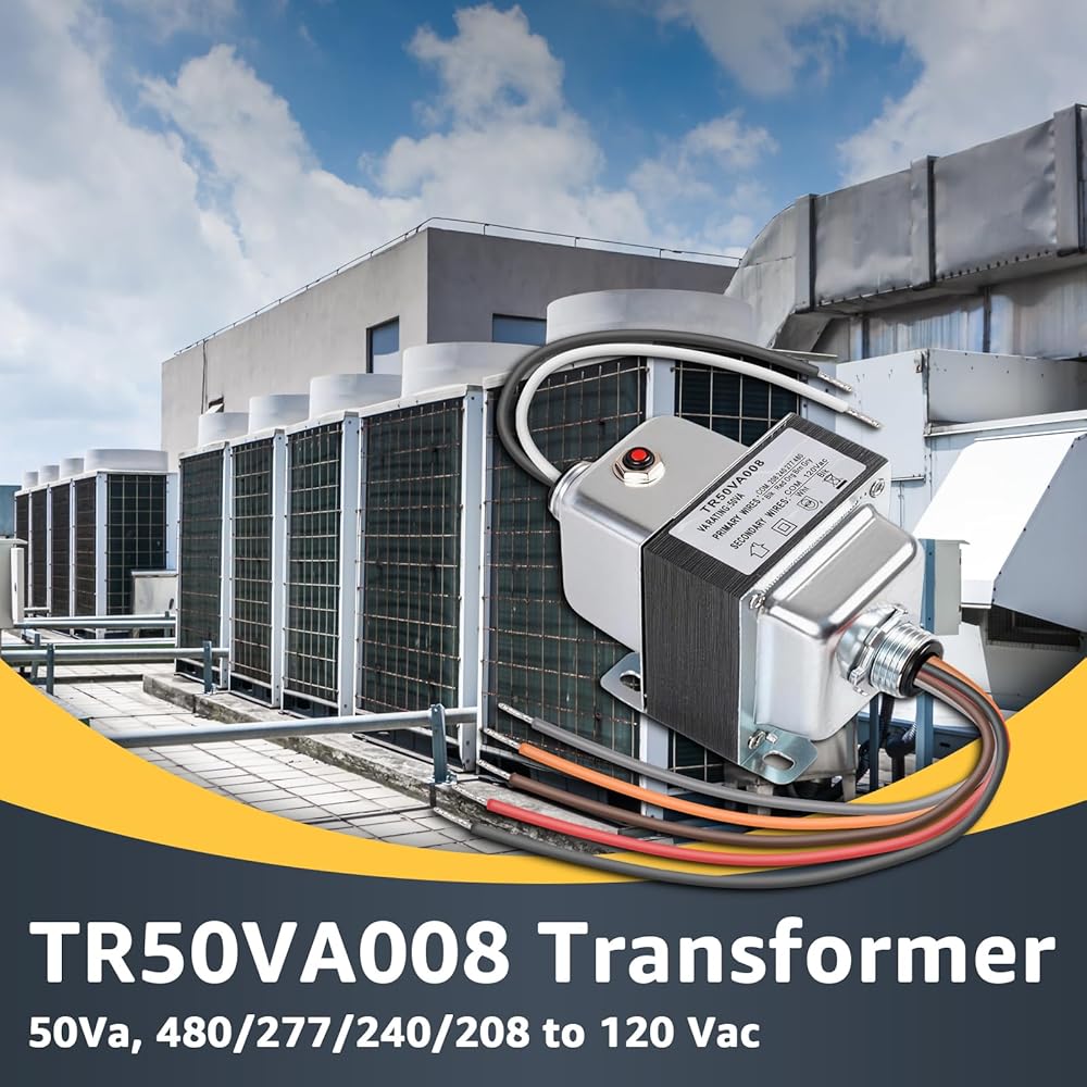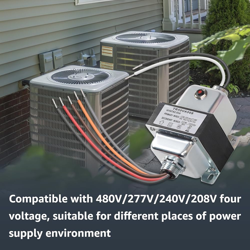 Precise Power Control: The TR50VA008 step-down transformer accommodates four mainstream industrial input voltages—480V, 277V, 240V, and 208V—delivering a stable 50VA output. Specifically designed to power 120V 50VA air conditioning systems and related equipment, including thermostats, relays, timers, and other control devices