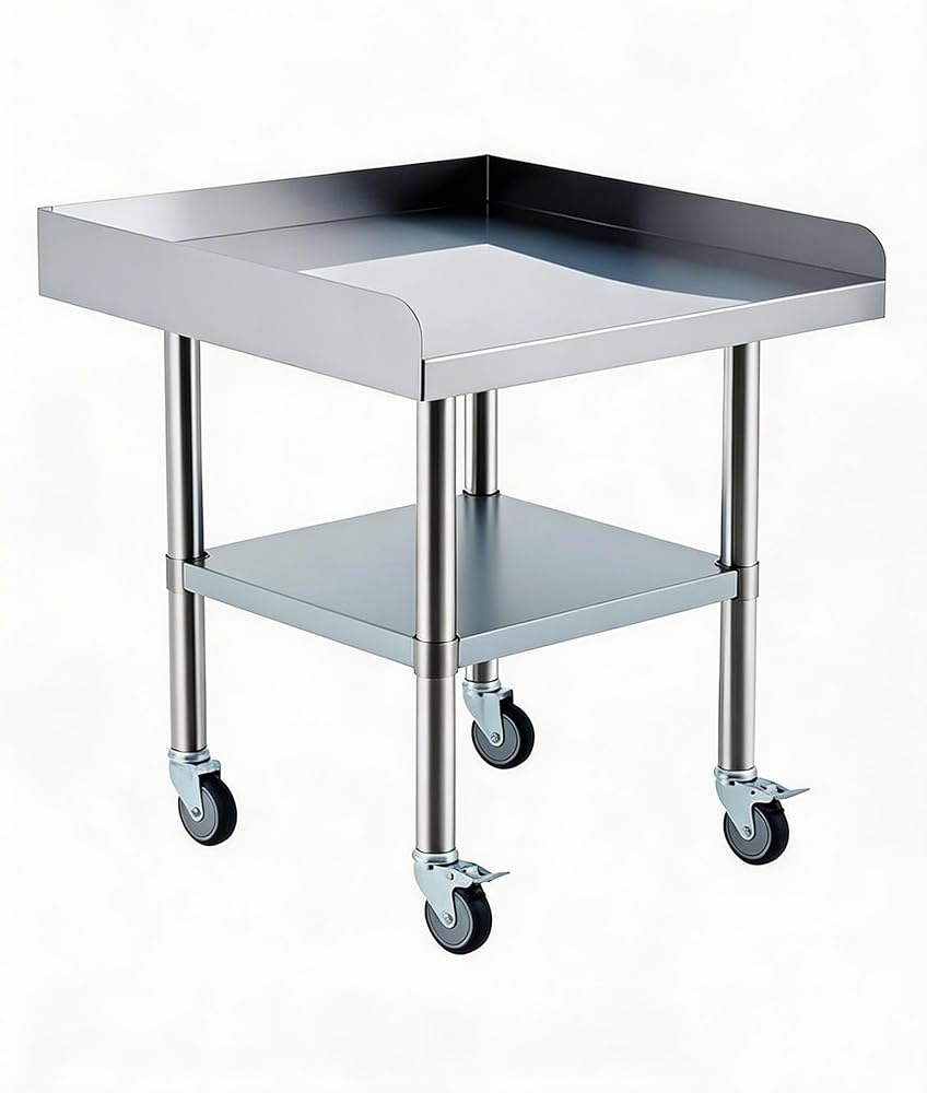 Versatile Workstation Combining a stainless steel top, locking wheels, splash protection, and modular storage, this table functions as a food prep station, packaging bench, plating counter, or garage workbench. Its robust load capacity and adaptable design serve restaurants, hotels, cafes, home chefs, and craft enthusiasts with reliable, daily-ready performance.