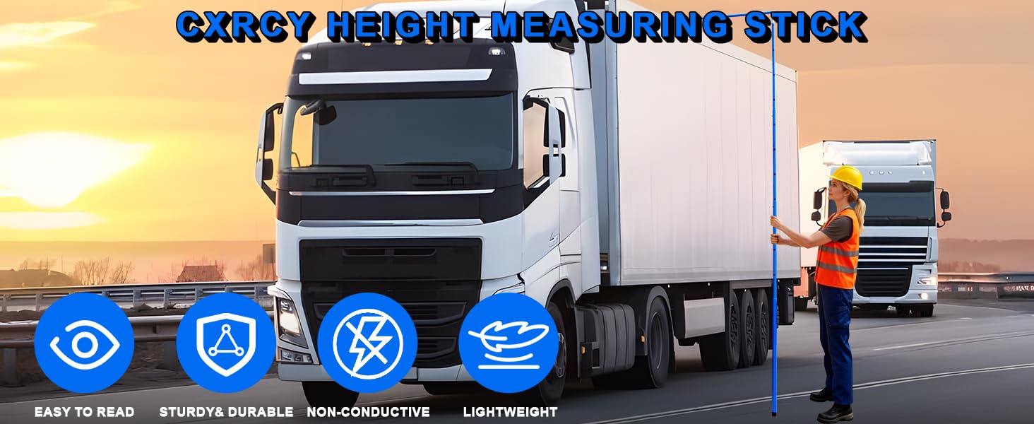 【Fiberglass Construction】: Height Stick for Trucks constructed from non-conductive fiberglass,lightweight but sturdy fiberglass throughout. Measuring pole is durable, with clear and wear-resistant markings. The surface coating avoid corrosion and rust, making it suitable for use in any road and weather conditions