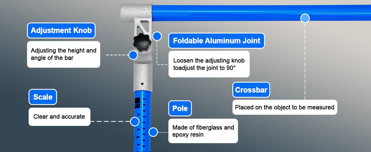 【Lightweight and Stable】: 20 FT height measuring stick weighs only about 6 pounds, having nonslip rubber mats on its bottom, the height measurement tool provides good stability when dealing with measurements of varying heights