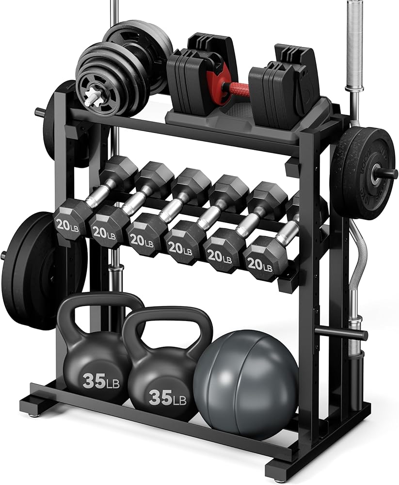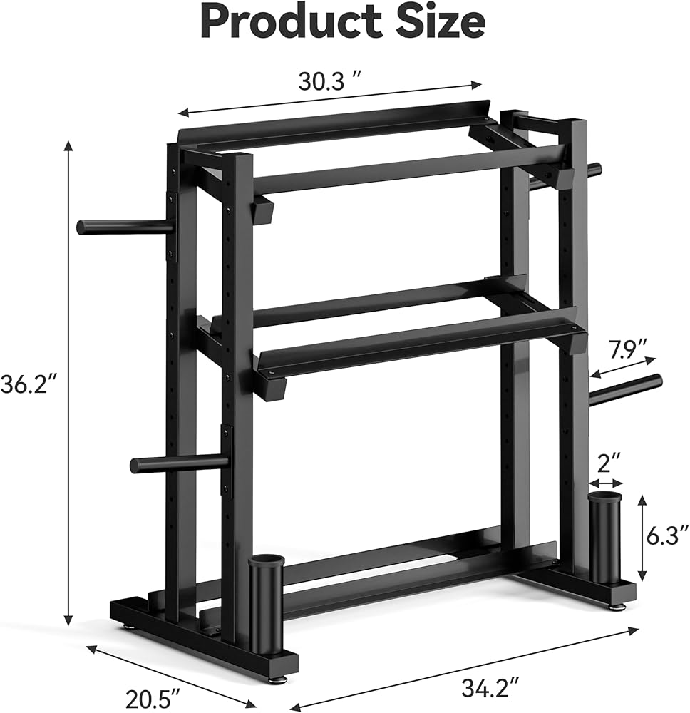 Space-Saving for Home Gym: Compact dimensions (34"L x 21"W x 36"H), fits neatly in corners or against walls. Angled tier design eliminates bending over—grab weights quickly for smoother workout transitions.