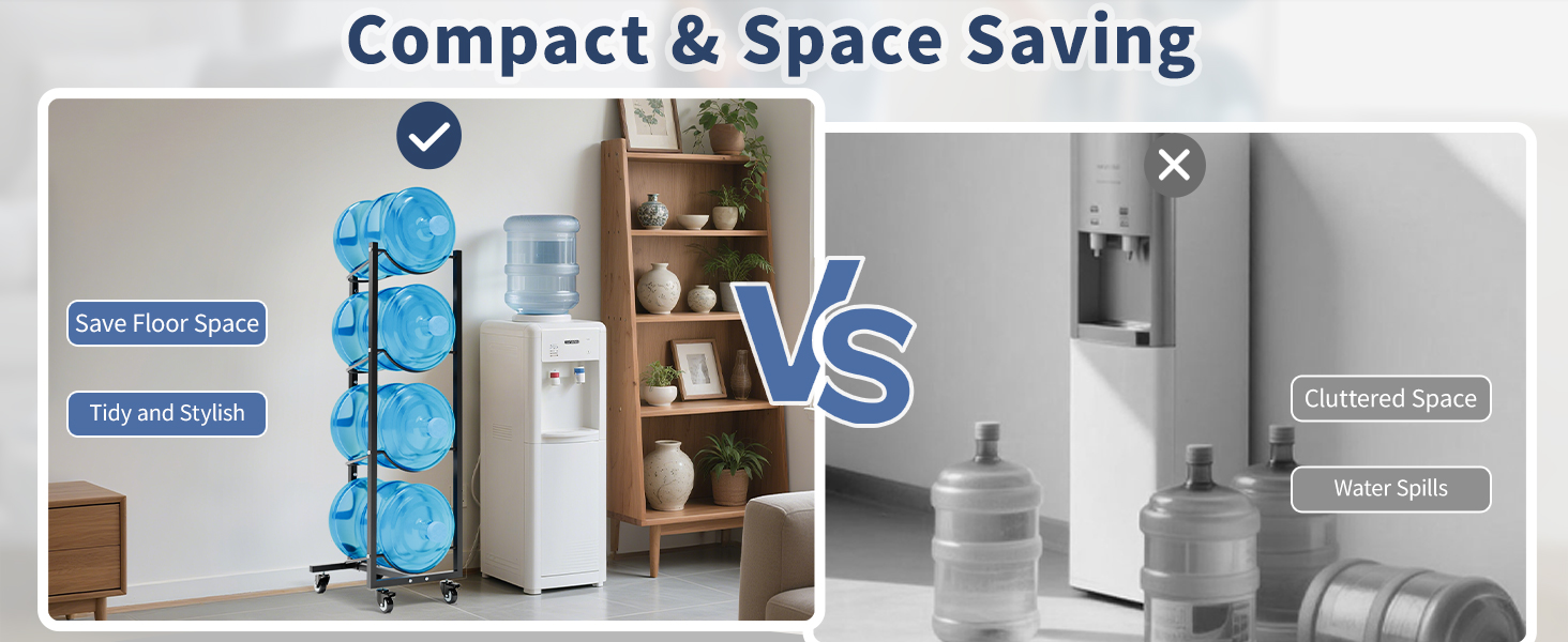 【Stack 4 Jugs Vertically, Save 70% Floor Space】 Maximize your storage capacity with our smart vertical design. This rack allows you to neatly organize four 5-gallon water bottles in the footprint of just one, making it ideal for warehouses, breakrooms, or home storage areas