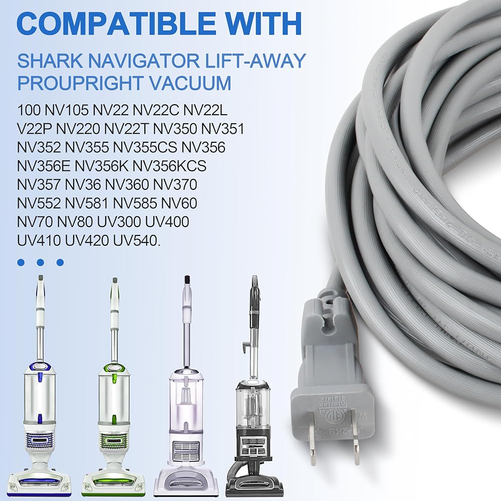 36ft Power Cord Compatible with Shark Navigator/Rotator Lift-Away Pro Upright Vacuums - Fits NV355 NV356 NV357 NV501 NV450 UV400 UV540 NV36 NV60 NV80 NV360 NV370 NV585 NV341 NV402 NV502