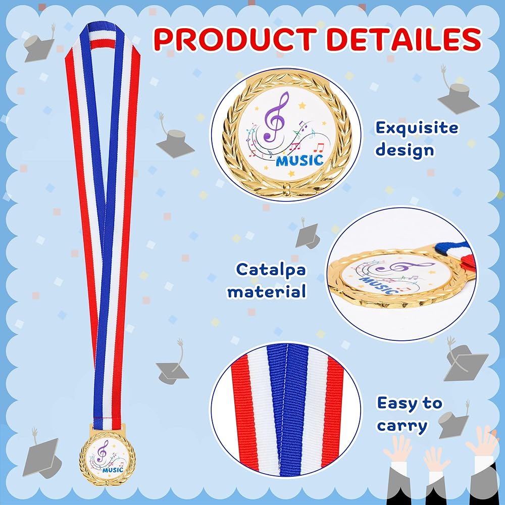 • Complete 30-Piece Bulk Set – Includes 30 gold-finished medals with matching neck ribbons, pre-assembled and ready to award. Perfect for classroom recognition, music competitions, talent shows, choir events, or end-of-year academic awards