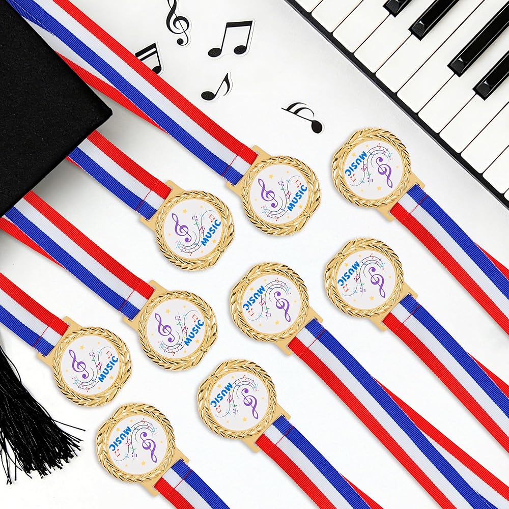 • Vibrant Music Theme – Features colorful music-inspired designs including notes, treble clefs, and instruments with gold finish that stand out from traditional medals