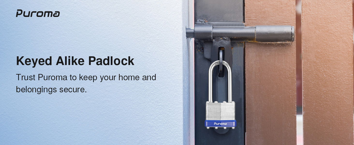 Security 4-pin Cylinder: Puroma durable key padlock has a 4-pin cylinder and double locking levers, which makes it difficult to pick and pry. The brass lock cylinder provides maximum security pry resistance, making it more durable and safer, reducing wear over time, and ensuring the key turns easily.