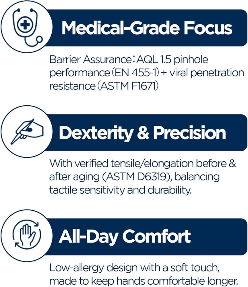 Pure Nitrile, Latex- & Powder-Free: You get a gentle-on-skin glove that helps reduce allergy risk while delivering a reliable barrier for everyday protection.