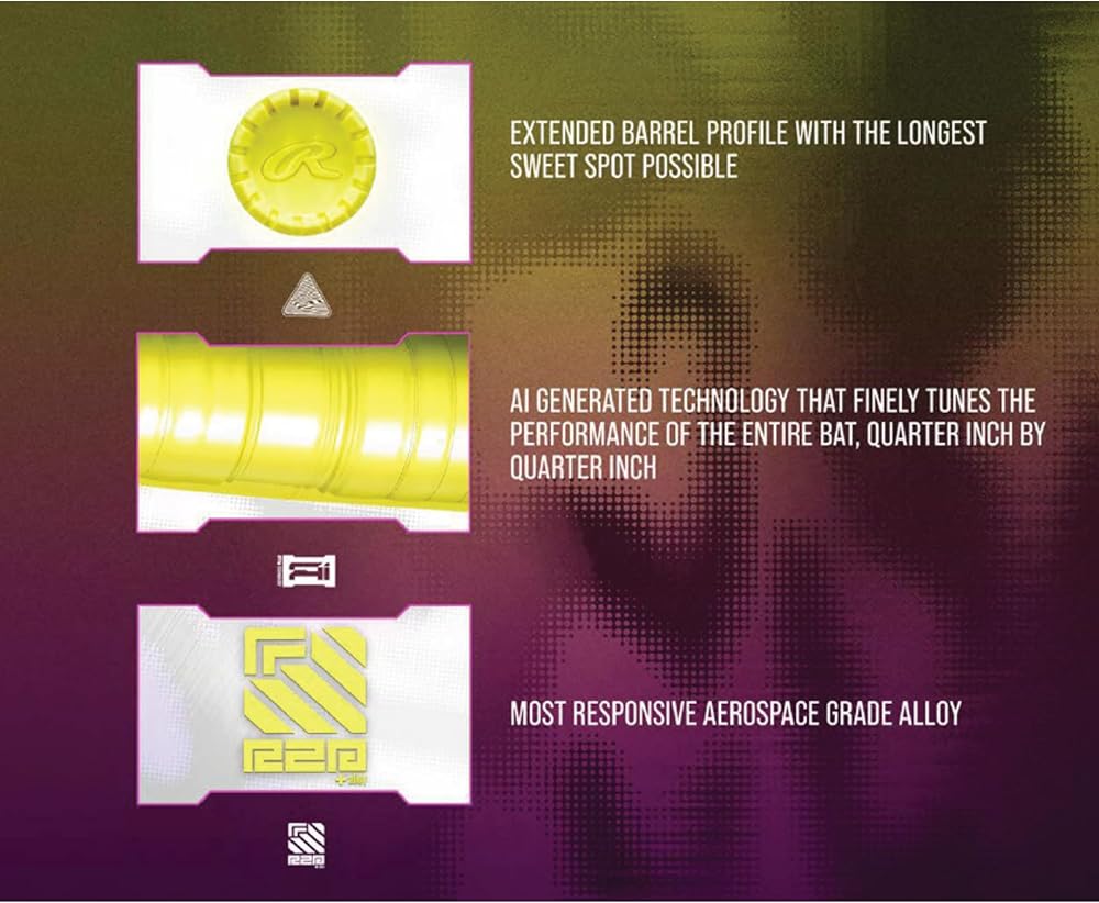 GENERATIVE AI TECHNOLOGY | Patent-pending Ai-generated barrel design optimizes performance across the entire hitting surface for a larger, more responsive sweet spot.
