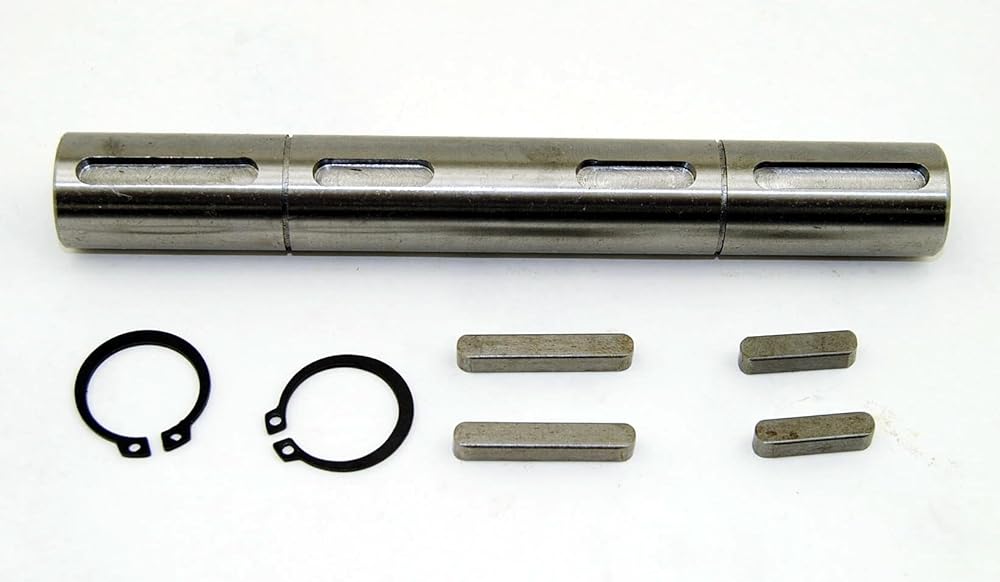 RV050 series worm gear speed reducer output shaft. This is a 1" diameter keyed double side output shaft kit for our 050 series reducer. Includes the shaft, keys, and retaining rings.