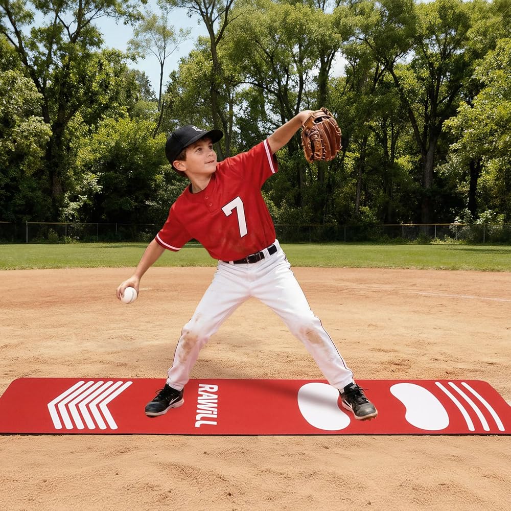 RAWILL Softball Pitching Mat-54 X 12 inch Portableble Pitching Mat with Non-Slip Silicone Backing for Indoor & Outdoor,Batting Stance Practice for Beginners