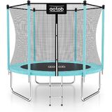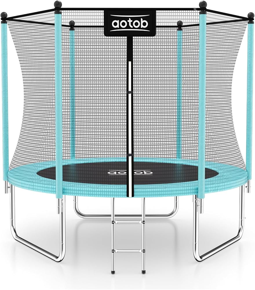 AOTOB 8FT Trampoline with Safety Enclosure Net,Blue Outdoor Trampoline with Ladder, Heavy Duty Jumping Mat and Spring Cover Padding for Kids