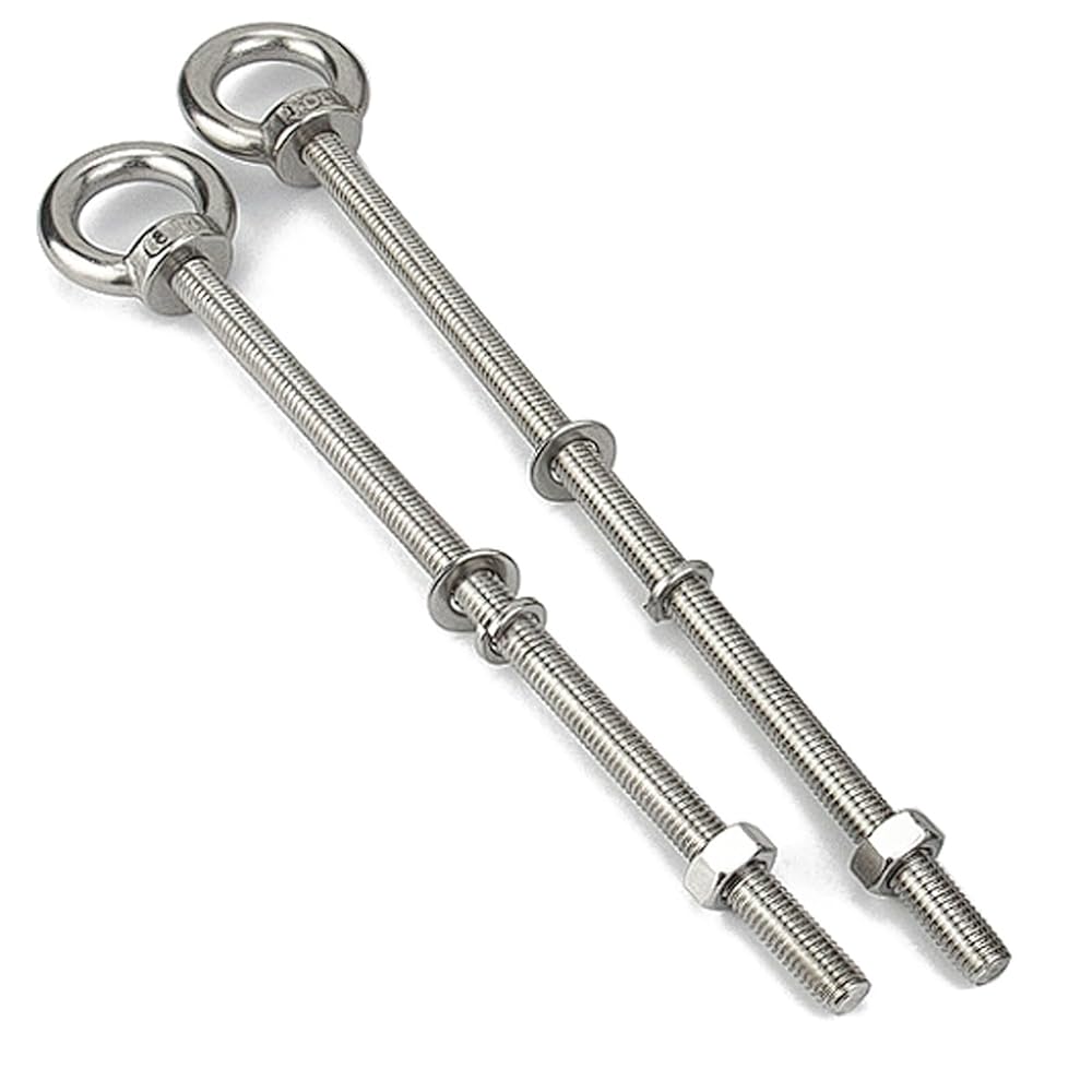 Complete 2-Pack: 2 eye bolts + 2 nuts + 2 flat washers + 2 spring washers per order