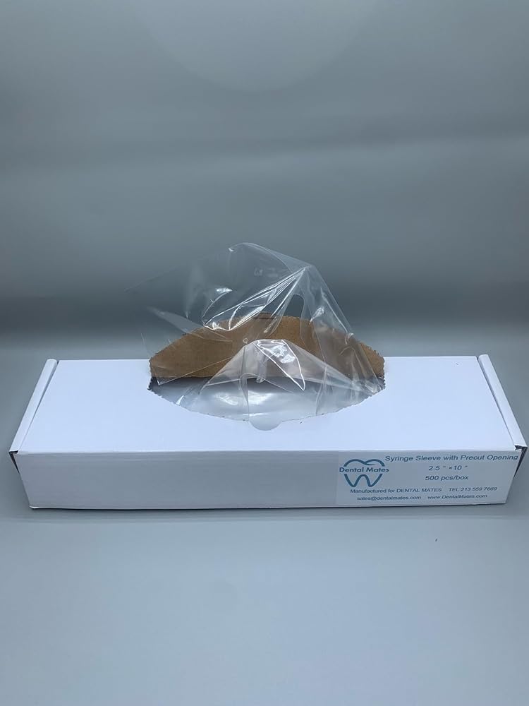 500pc Pack: Packaging with 500 sleeves per box. Standard amount of syringe sleeves, will be plenty to use in your practice.
