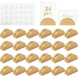 Worown 24 Pack Gold Wood Place Card Holders, Semicircular Design Table Number Stands, Wooden Wedding Table Name Holder for Display Name Tags, Photos, Menu, or Party & Restaurant Decorations