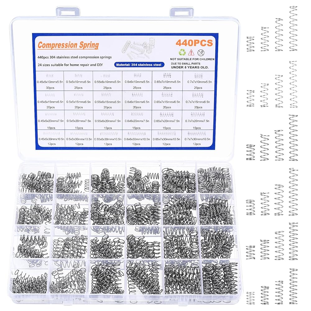 2. Complete Range: This range contains 440 304 stainless steel compression springs in 24 different sizes to meet a variety of repair needs.