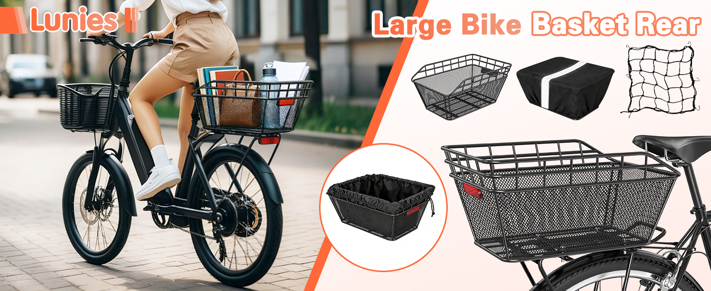 【Versatile & All-Scenario】: Compatible with both bicycles and e-bikes. More than just a bike rear basket, it doubles as a shopping basket, pet carrier, child's storage bin, or temporary newspaper holder. Handle commuting, outings, and shopping with one basket—ultra-practical.